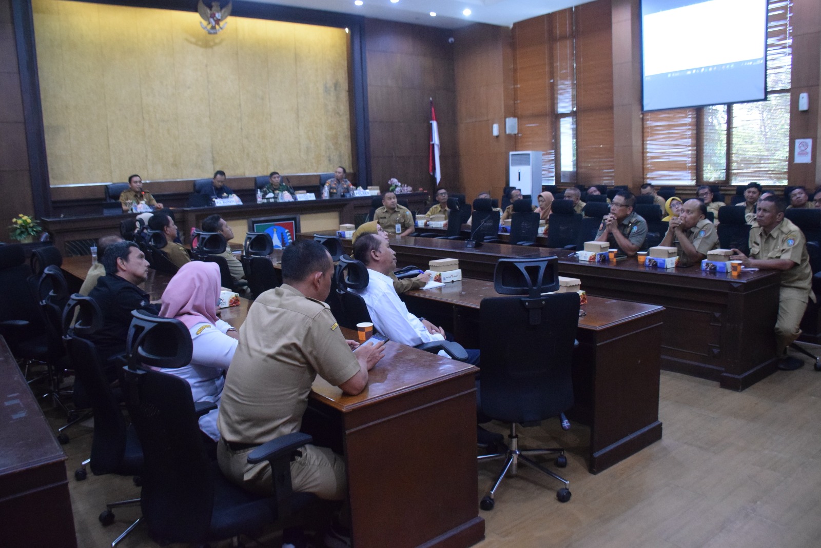 Pj Bupati Jombang Dr. Drs. Teguh Narutomo M.M., rapat koordinasi kesiapsiagaan menghadapi bencana hidrometeorologi lintas sekor, pada Selasa (5/11/2024).