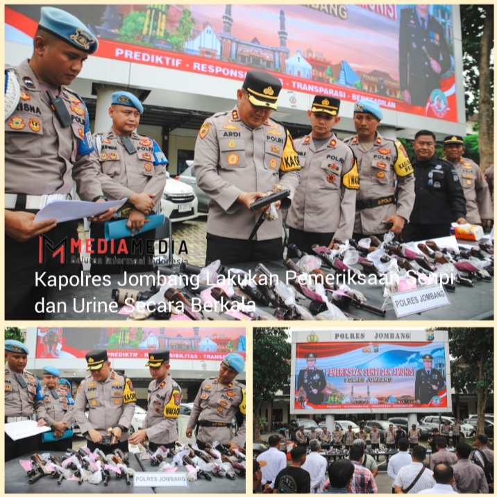 Jombang, Mediamedia.id – Personel Polres Jombang mendadak diperiksa senjata api (Senpi) dan dilakukan tes urine. Pemeriksaan ini dilakukan untuk mengantisipasi adanya kasus penyalahgunaan senpi dan narkoba.Personel Polres Jombang mendadak diperiksa senjata api (Senpi) dan dilakukan tes urine. Pemeriksaan ini dilakukan untuk mengantisipasi adanya kasus penyalahgunaan senpi dan narkoba.
