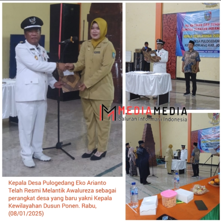 Jombang, Mediamedia.id – Kepala Desa Pulogedang Eko Arianto Telah Resmi Melantik Awalureza sebagai perangkat desa yang baru yakni Kepala Kewilayahan Dusun Ponen.