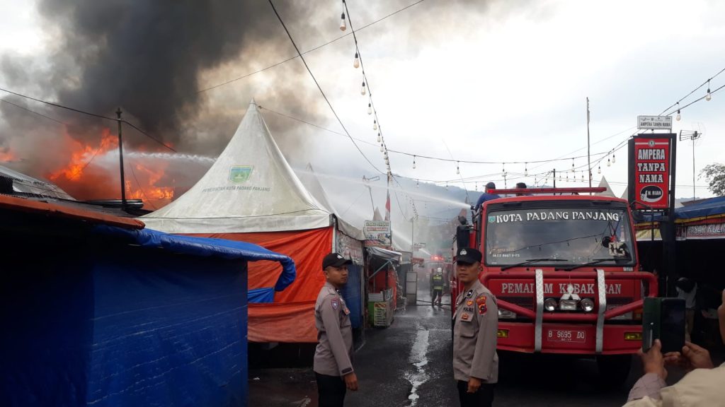 Terlihat dalam vidio itu, api sudah membesar membakar beberapa rumah di Pasar Kuliner Kota Padang Panjang tersebut.
