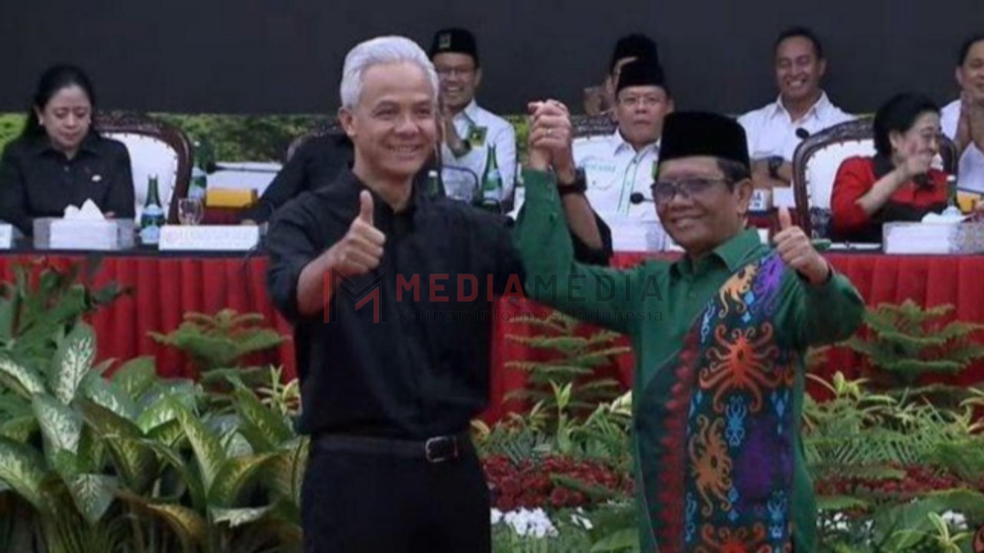 Jakarta, Mediamedia.id – Menteri Koordinator Bidang Politik, Hukum, dan Keamanan, Mahfud MD, resmi menjadi calon wakil presiden dari Ganjar Pranowo. Pengumuman itu disampaikan oleh Ketua Umum PDIP Megawati Soekarnoputri saat deklarasi bersama partai koalisi di Kantor DPP PDIP, Jakarta, Rabu (18/10/2023).