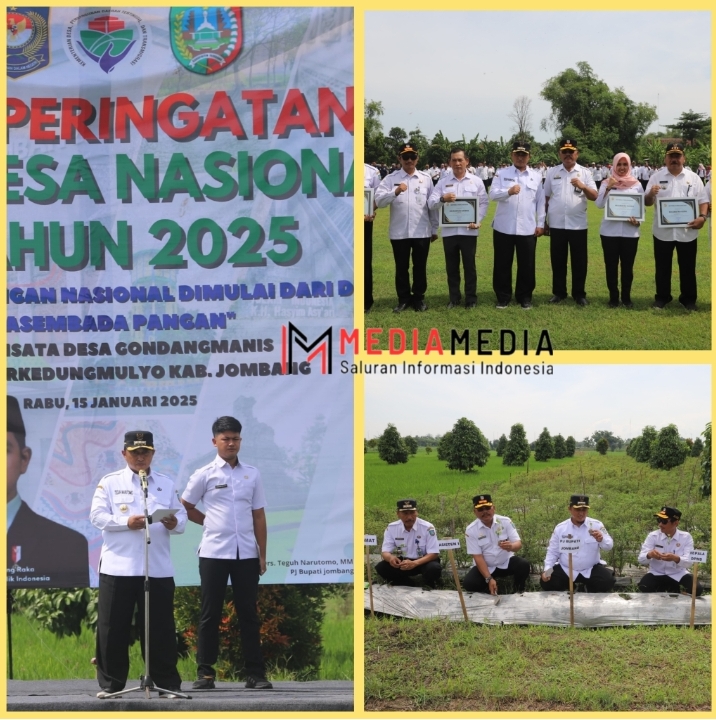 Jombang, Mediamedia.id – Pemerintah Kabupaten Jombang menggelar apel akbar guna memperingati Hari Desa Nasional 2025 di Lapangan Agro Wisata Desa Gondangmanis, Kecamatan Bandarkedungmulyo, pada Rabu pagi (15/01/2025) . Apel dipimpin langsung oleh Pj Bupati Jombang, Dr. Drs. Teguh Narutomo, M.M., dan dihadiri oleh Kepala OPD terkait lingkup Pemkab Jombang, Camat, serta Kepala Desa beserta perangkat desa se-Kabupaten Jombang.