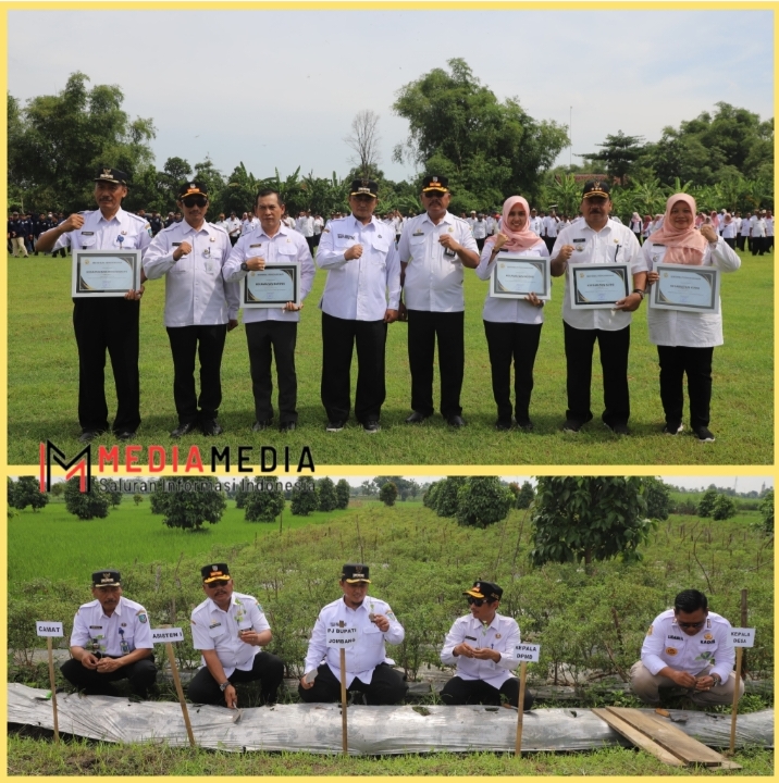 Usai apel, Pj Bupati Jombang Teguh Narutomo didampingi Asisten Pemerintahan dan Kesejahteraan Rakyat, Drs. Purwanto, MKP dan Kepala DPMD Kabupaten Jombang Sholahuddin H.S., S. STP., M. Si menyerahkan apresiasi kepada Kecamatan dengan Penetapan APBDes tercepat Bandarkedungmulyo, Bareng, Ngoro, Gudo dan Kudu. Serta melaksanakan penanaman bibit cabe secara simbolis yang diikuti Kecamatan dan Desa se Kabupaten Jombang.(Tio)