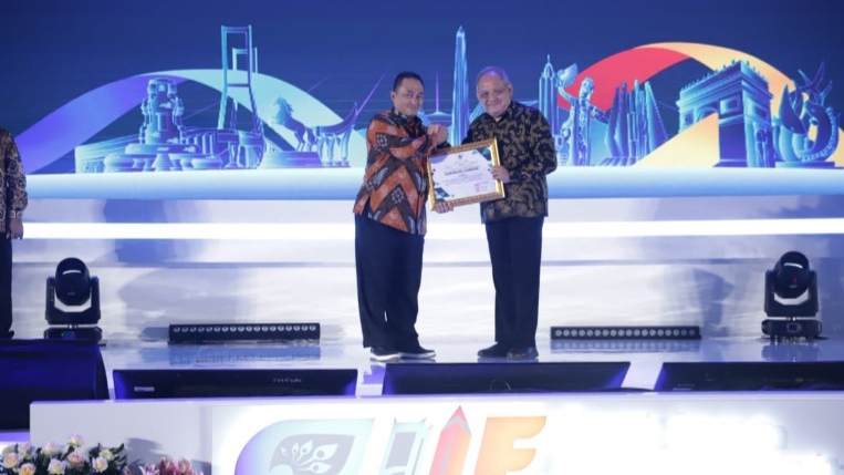 Penghargaan yang diterima oleh Pj Bupati Jombang Dr. Drs. Teguh Narutomo M.M tersebut diserahkan langsung oleh Direktur Pengembangan Potensi Daerah Kementerian Investasi/BPKM Suhartono dalam kegiatan East Java Investment Forum (EJIF) Tahun 2024 di Ballroom Hotel Westin Surabaya, Kamis (24/10/2024).