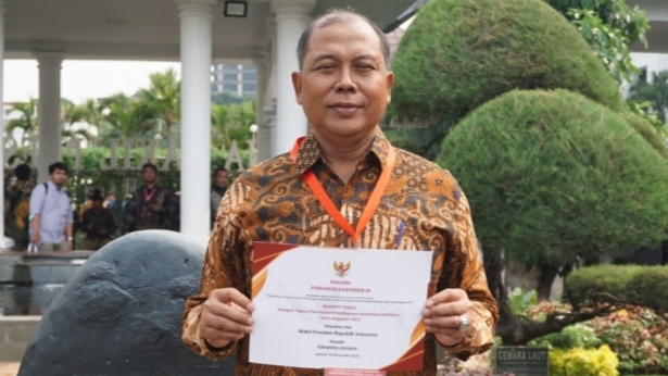 Penghargaan diterima oleh Pj Bupati Jombang Sugiat S.Sos, M.Psi.T pada Rapat Koordinasi Nasional dan Penyerahan Insentif Fiskal Tahun Berjalan untuk Kategori Kinerja Penghapusan Kemiskinan Ekstrem Tahun 2023 di Istana Wapres, Jl. Medan Merdeka Selatan No. 6, Jakarta Pusat, Kamis (11/9/2023).