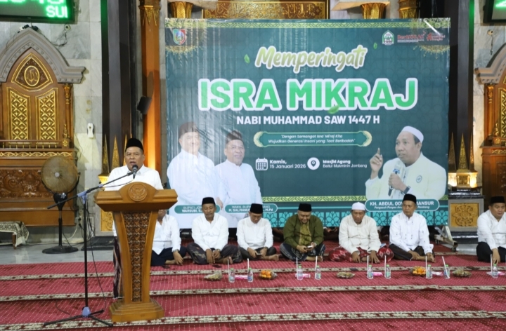 Wakil Bupati Jombang Salmanudin yang membacakan sambutan Bupati Jombang menyampaikan bahwa Isra Mi’raj bukan sekadar peringatan rutin, melainkan momentum untuk merefleksikan perintah salat lima waktu sebagai identitas utama umat Islam.