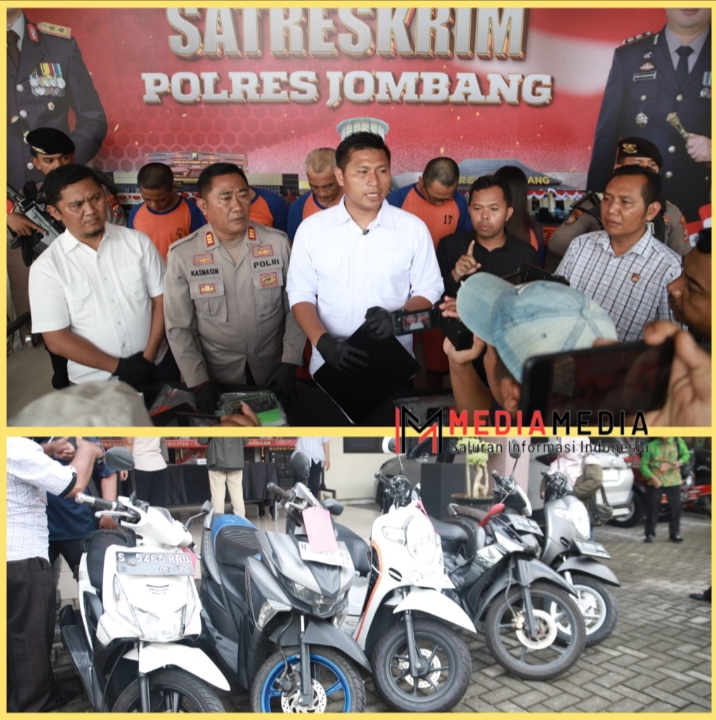 Jombang,Mediamedia.id – Kepolisian Resort Jombang menangkap 5 orang tersangka pelaku tindak pidana pencurian kendaraan bermotor (curanmor) dan mengamankan 5 unit sepeda motor.