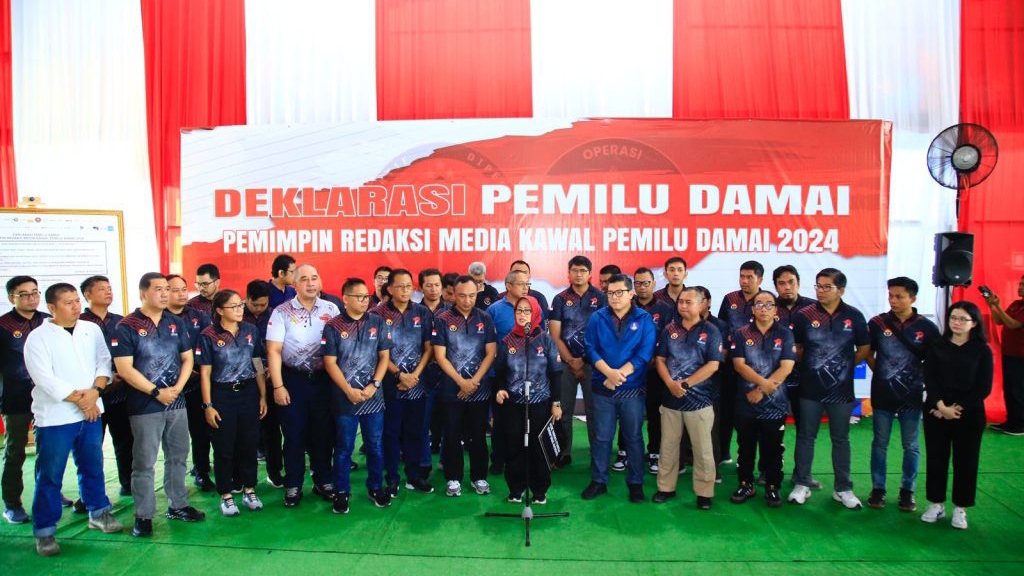 “Kami pimpinan redaksi media siap menjaga Pemilu Tahun 2024 yang damai, aman, sejuk dan bermartabat demi sebesar-besarnya kemaslahatan publik,” ujar Ketua Dewan Pers yang diikuti para pemimpin redaksi.