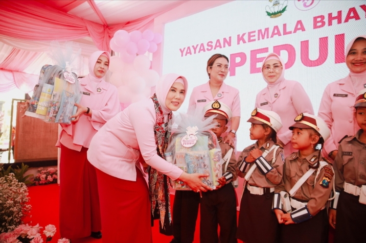 Istri dari Wakapolda Jatim Brigjen Pol Dr. Pasma Royce, S.I.K., M.H tersebut membagikan makanan sehat bersama Pengurus Yayasan Kemala Bhayangkari Daerah Jawa Timur. Selasa (11/2/2025).